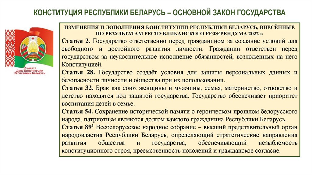 КОНСТИТУЦИЯ РЕСПУБЛИКИ БЕЛАРУСЬ – ОСНОВНОЙ ЗАКОН ГОСУДАРСТВАИЗМЕНЕНИЯ И ДОПОЛНЕНИЯ КОНСТИТУЦИИ РЕСПУБЛИКИ БЕЛАРУСЬ, ВНЕСЁННЫЕ