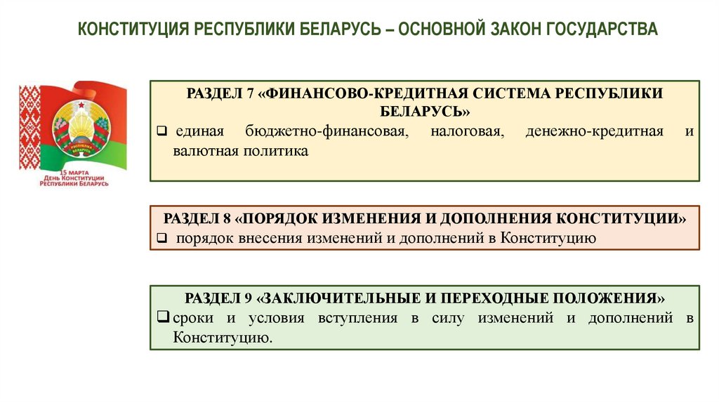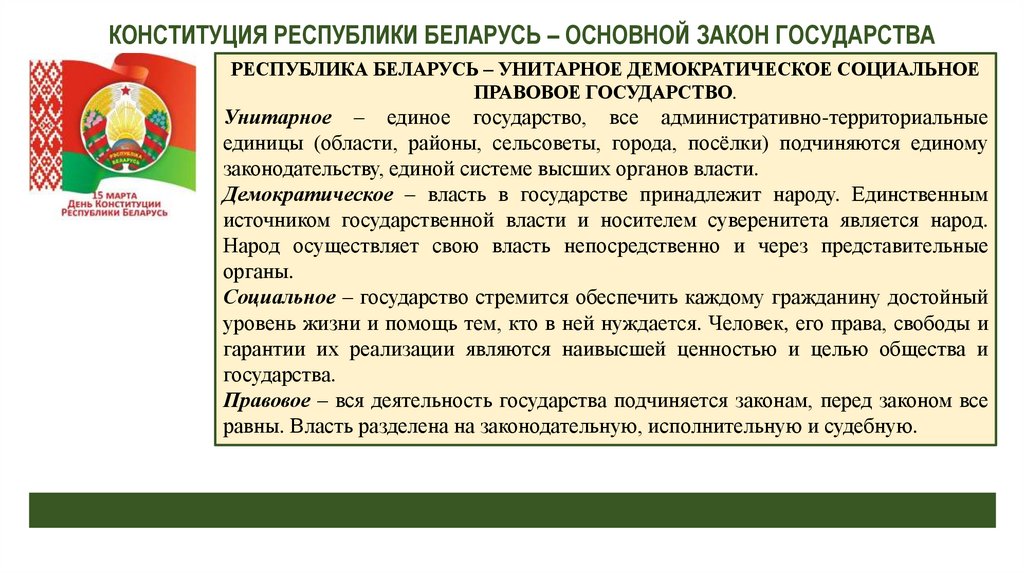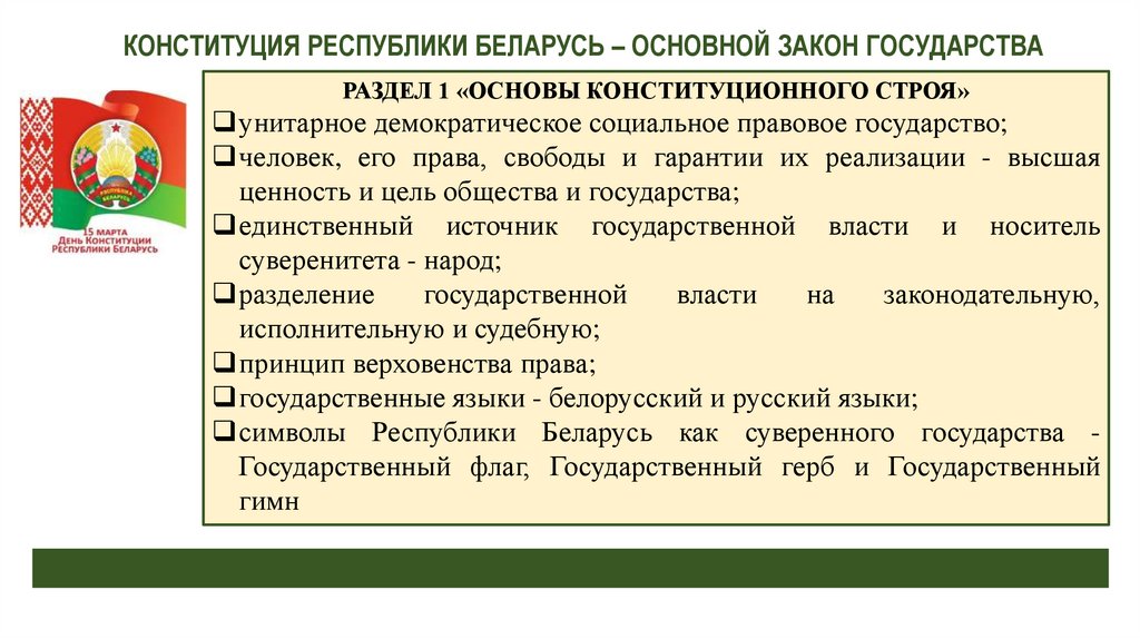 КОНСТИТУЦИЯ РЕСПУБЛИКИ БЕЛАРУСЬ – ОСНОВНОЙ ЗАКОН ГОСУДАРСТВАРАЗДЕЛ 1 «ОСНОВЫ КОНСТИТУЦИОННОГО СТРОЯ»