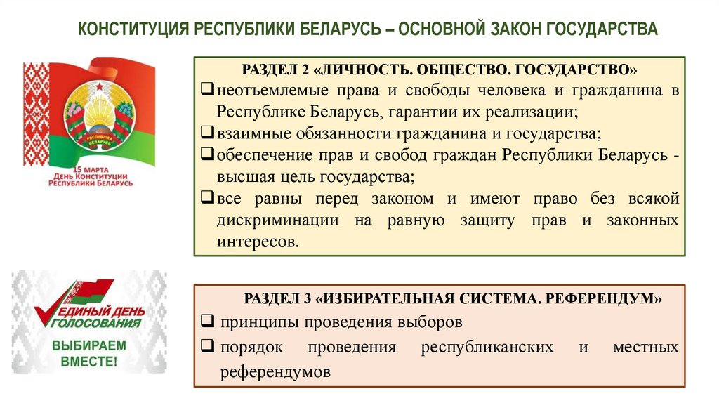 КОНСТИТУЦИЯ РЕСПУБЛИКИ БЕЛАРУСЬ – ОСНОВНОЙ ЗАКОН ГОСУДАРСТВАРАЗДЕЛ 2 «ЛИЧНОСТЬ. ОБЩЕСТВО. ГОСУДАРСТВО»