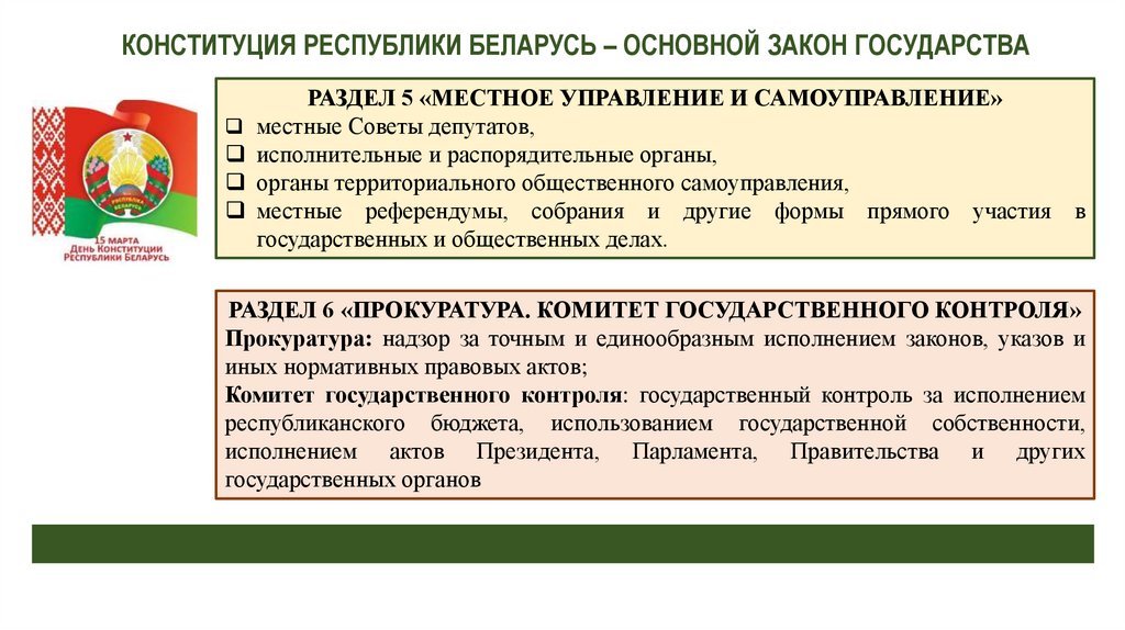 КОНСТИТУЦИЯ РЕСПУБЛИКИ БЕЛАРУСЬ – ОСНОВНОЙ ЗАКОН ГОСУДАРСТВАРАЗДЕЛ 5 «МЕСТНОЕ УПРАВЛЕНИЕ И САМОУПРАВЛЕНИЕ»