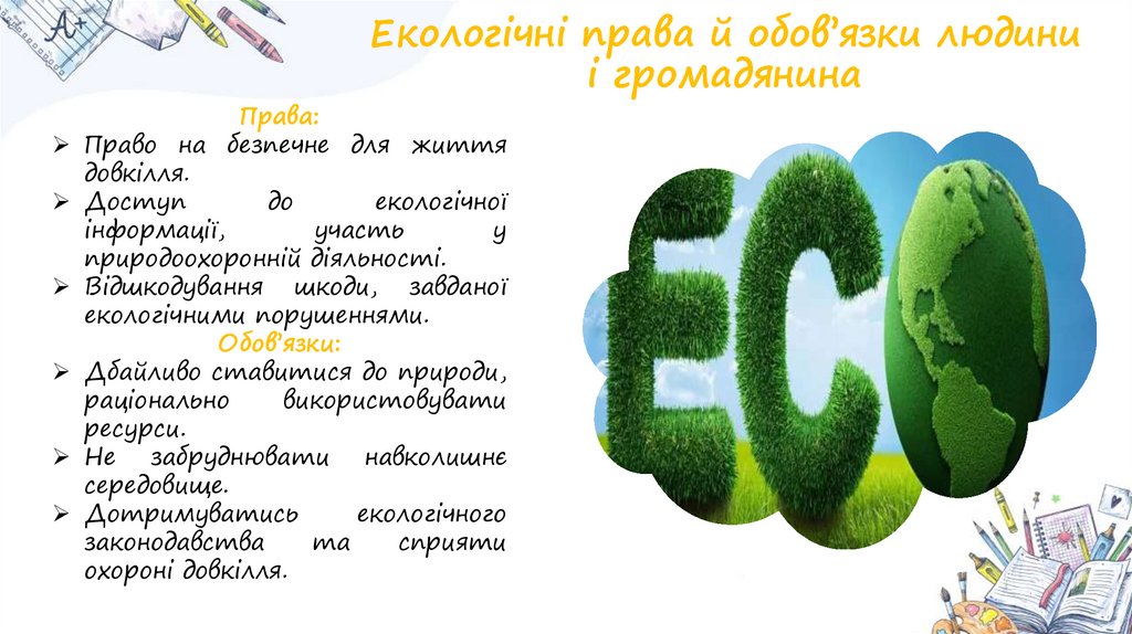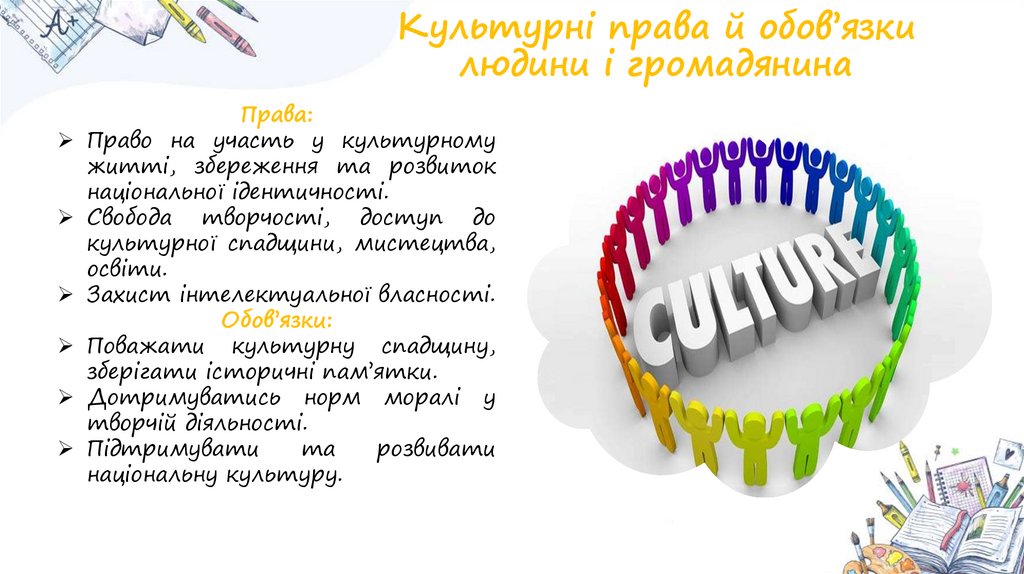 та збереження пам’яток. Дотримання культурних і екологічних прав та обов’язків