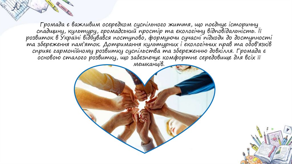 сприяє гармонійному розвитку суспільства та збереженню довкілля. Громада є