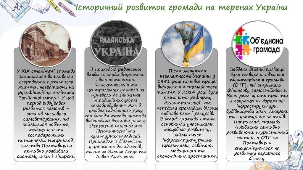 Історичний розвиток громади на теренах УкраїниУ XIX столітті громади