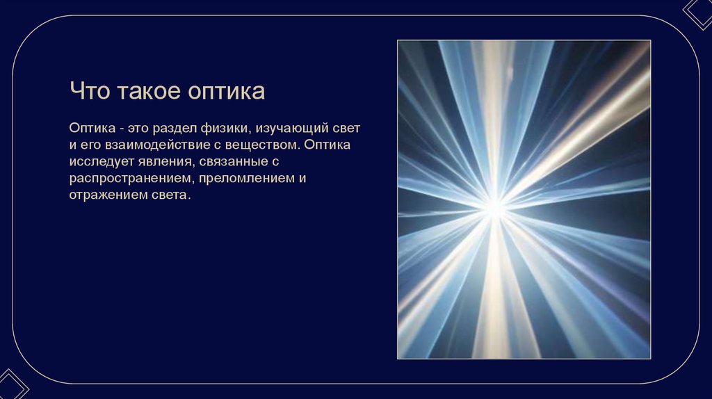 Что такое оптикаОптика - это раздел физики, изучающий свет