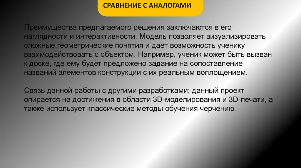 СРАВНЕНИЕ С АНАЛОГАМИПреимущества предлагаемого решения заключаются в его