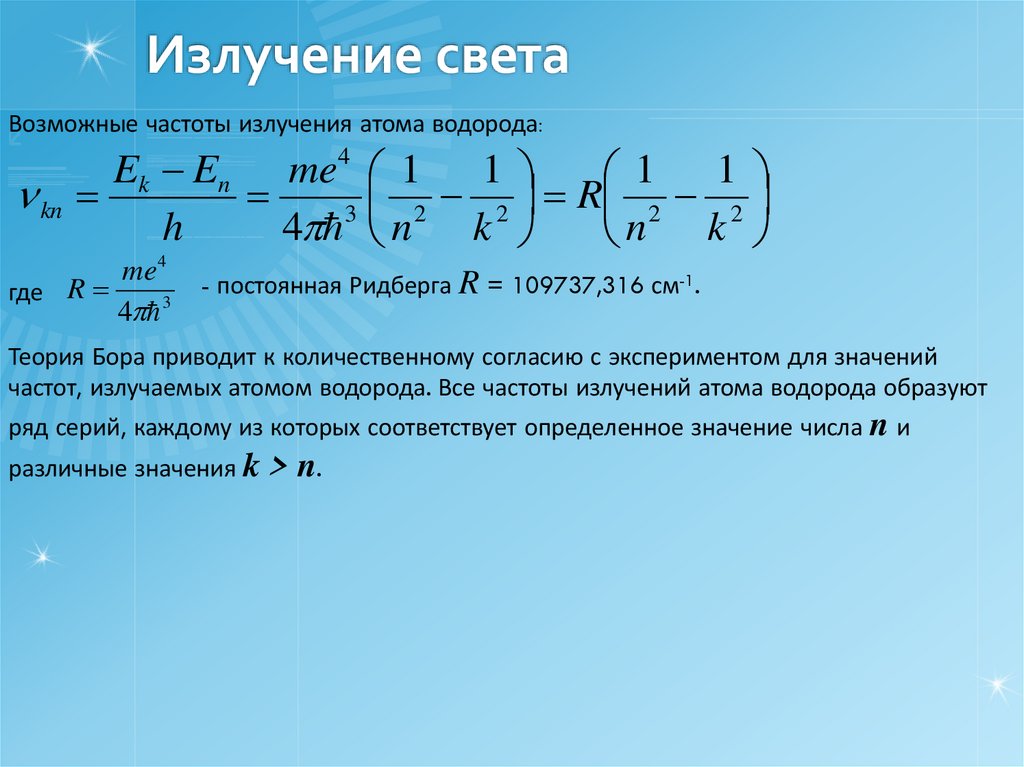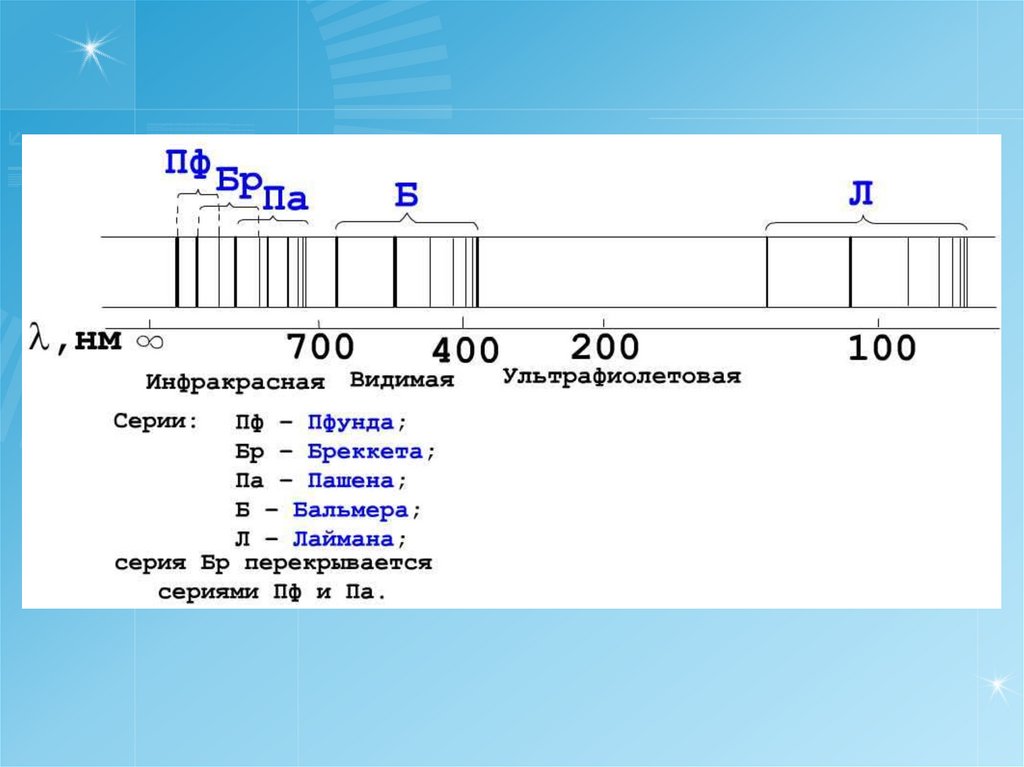частот, излучаемых атомом водорода. Все частоты излучений атома водорода образуют
