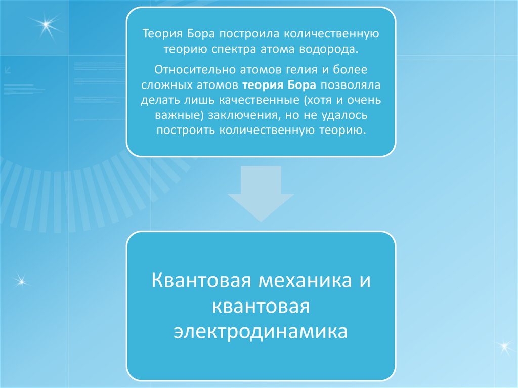 Теория Бора построила количественнуютеорию спектра атома водорода.