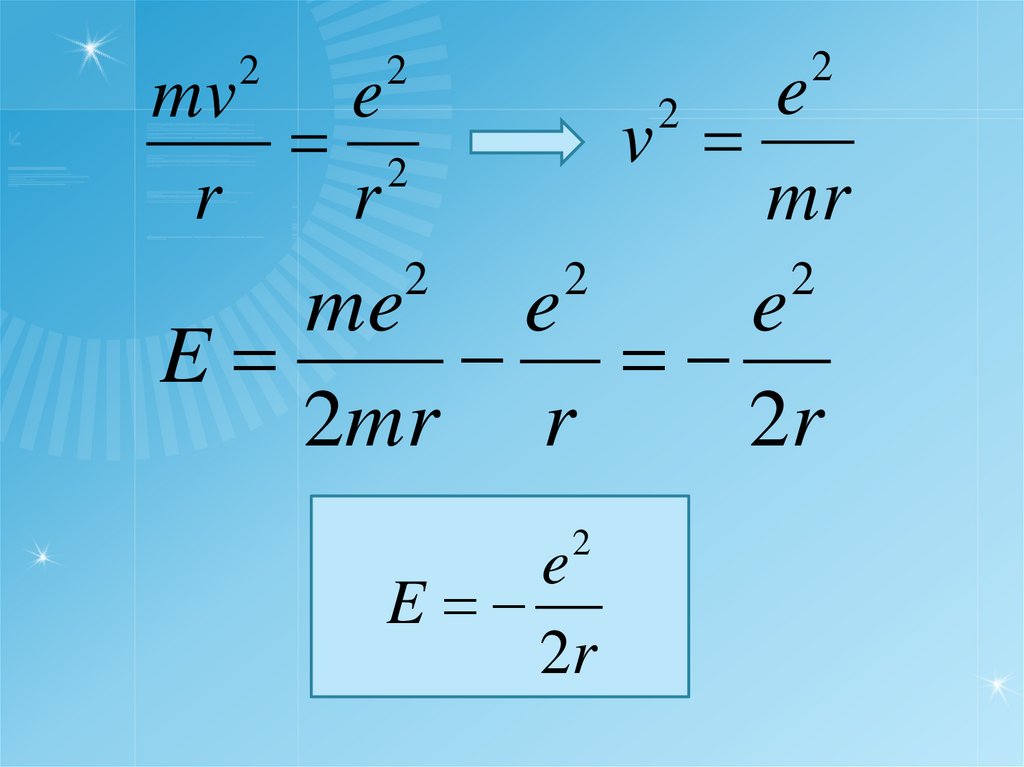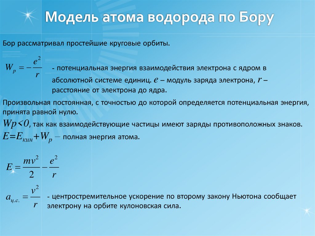 Из первого постулата Бора энергия может принимать только определенное значение En.Электрон движется по круговой орбите, то