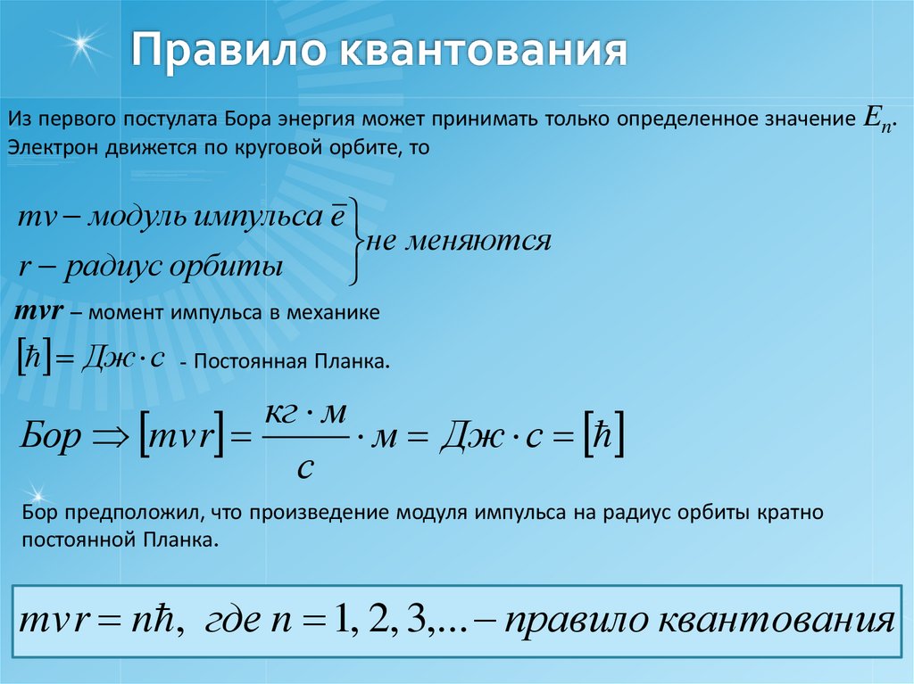 Бор предположил, что произведение модуля импульса на радиус орбиты кратно