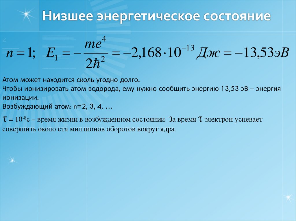 n 1; E1 2 2,168 10 Дж 13,53эВ