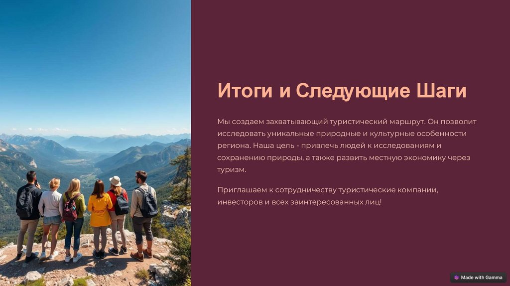 Итоги и Следующие ШагиМы создаем захватывающий туристический маршрут. Он позволит