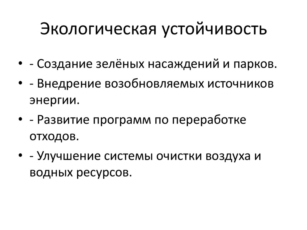 Экологическая устойчивость• - Создание зелёных насаждений и парков.