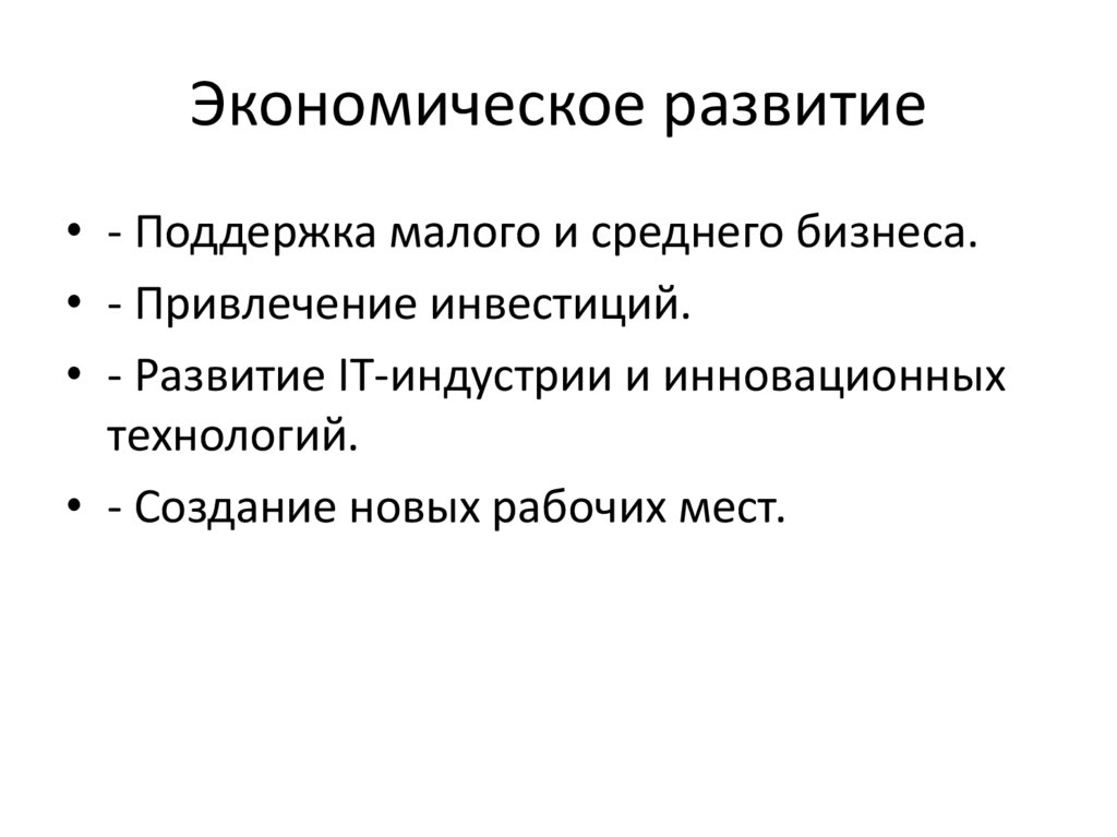 Экономическое развитие• - Поддержка малого и среднего бизнеса.