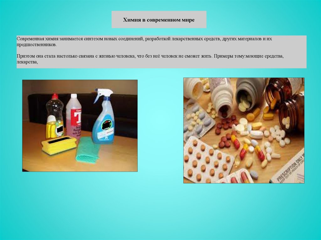 Химия в современном миреСовременная химия занимается синтезом новых соединений, разработкой лекарственных средств, других материалов и их