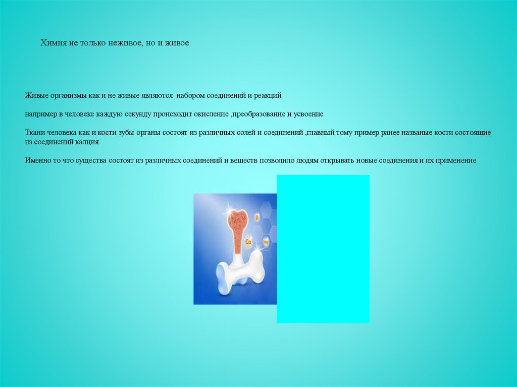 Химия не только неживое, но и живоеЖивые организмы как и не живые являются набором соединений и реакций