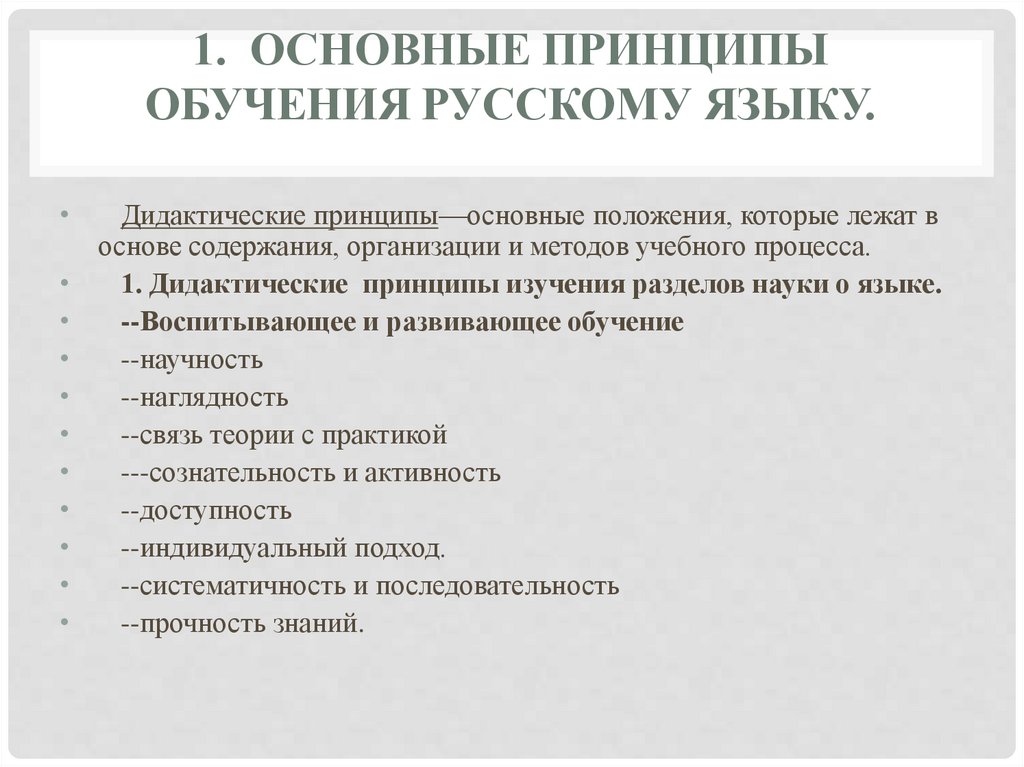 1. ОСНОВНЫЕ ПРИНЦИПЫОБУЧЕНИЯ РУССКОМУ ЯЗЫКУ.