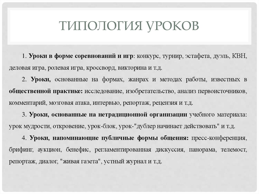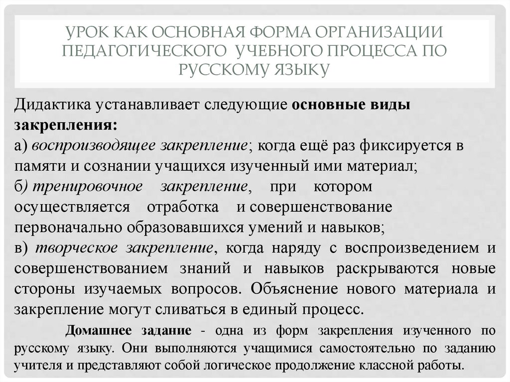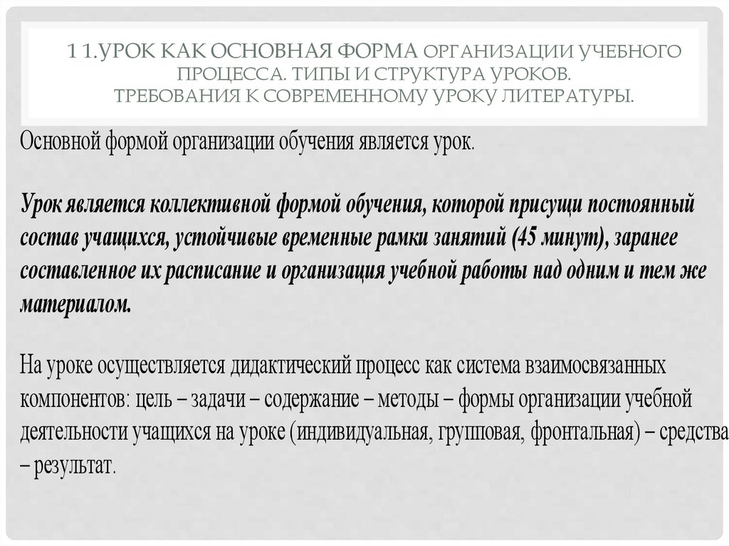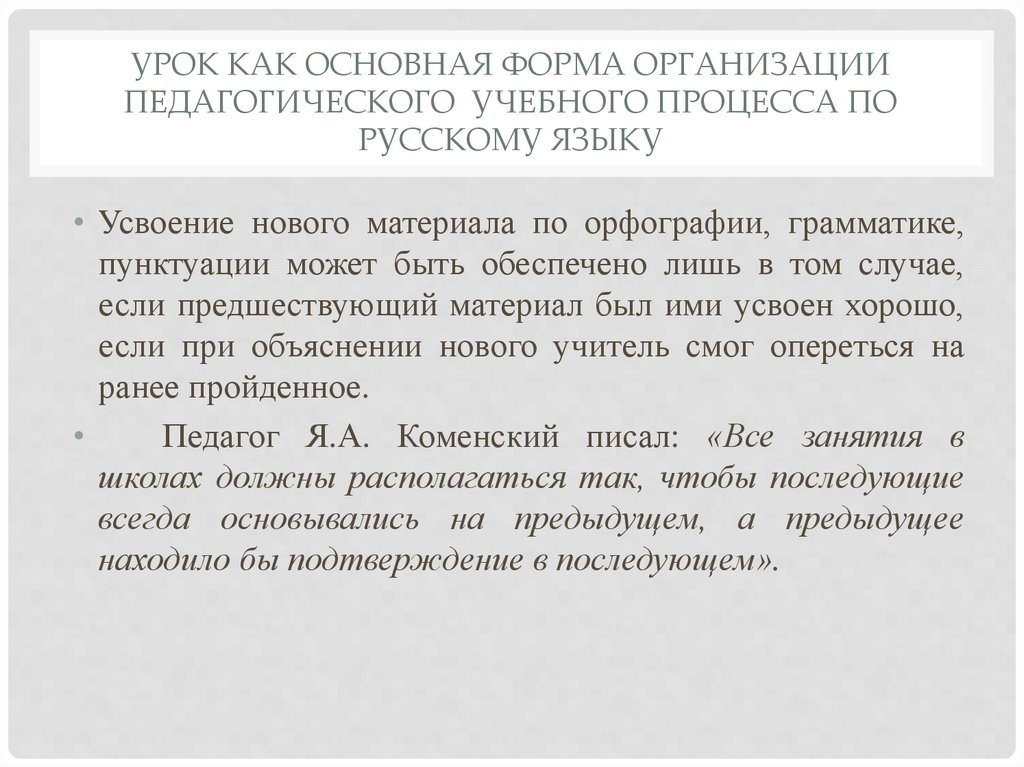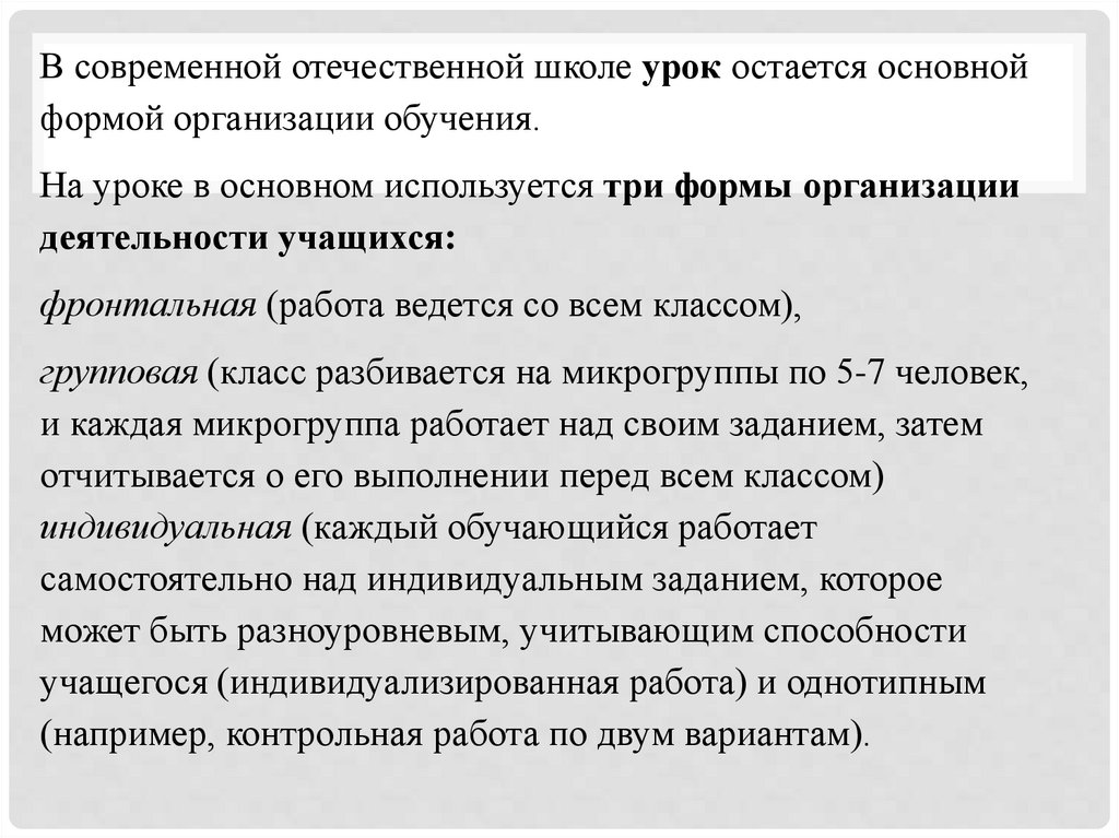 УРОК КАК ОСНОВНАЯ ФОРМА ОРГАНИЗАЦИИПЕДАГОГИЧЕСКОГО УЧЕБНОГО ПРОЦЕССА ПО