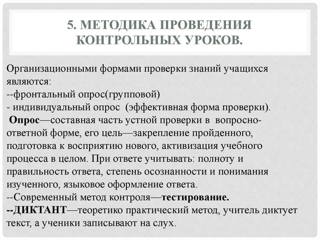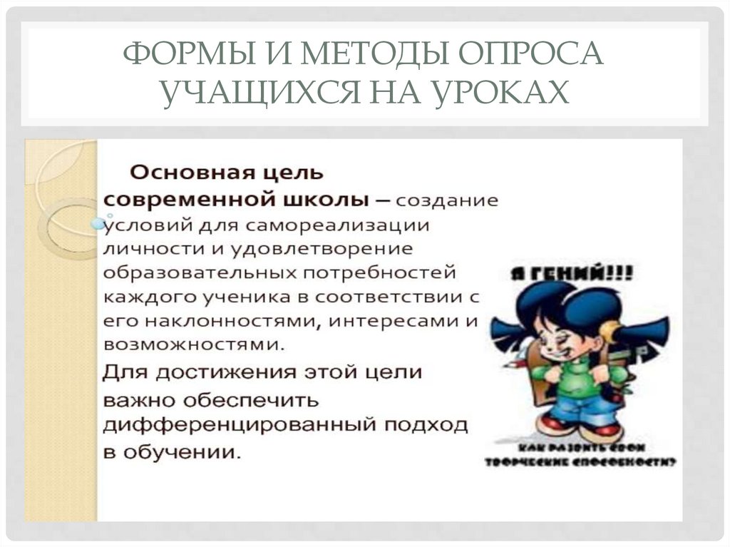 ФОРМЫ И МЕТОДЫ ОПРОСАУЧАЩИХСЯ НА УРОКАХ
