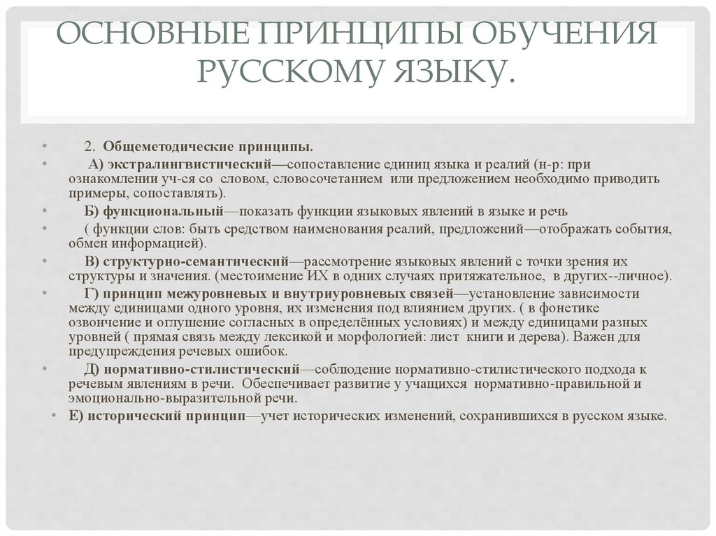 ОСНОВНЫЕ ПРИНЦИПЫ ОБУЧЕНИЯРУССКОМУ ЯЗЫКУ.