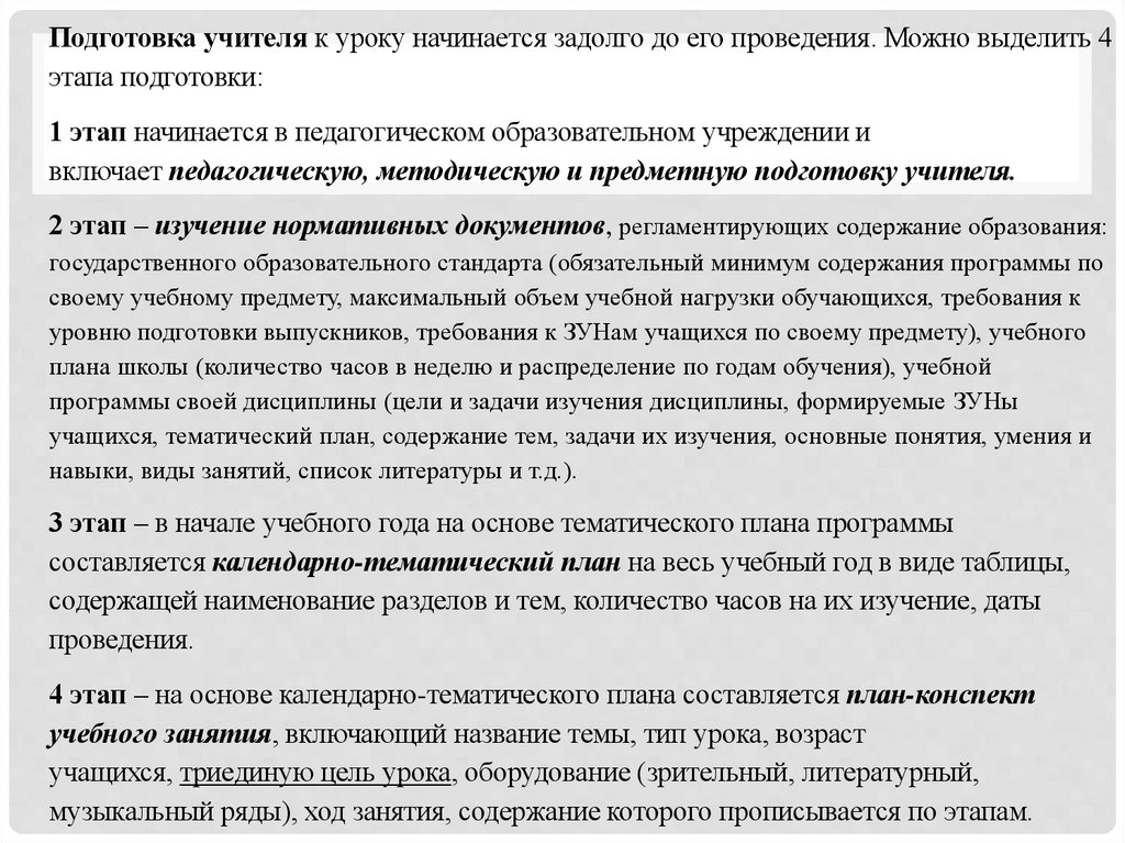 Готовясь к уроку, учитель продумывает цель, содержание, методы и