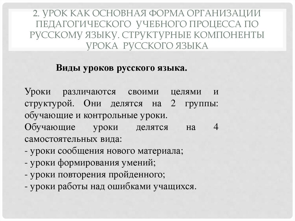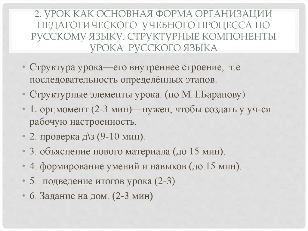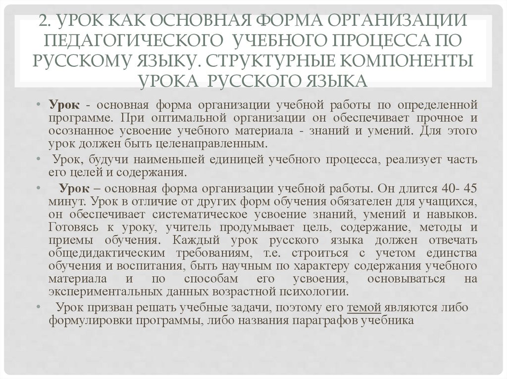 2. УРОК КАК ОСНОВНАЯ ФОРМА ОРГАНИЗАЦИИПЕДАГОГИЧЕСКОГО УЧЕБНОГО ПРОЦЕССА ПО