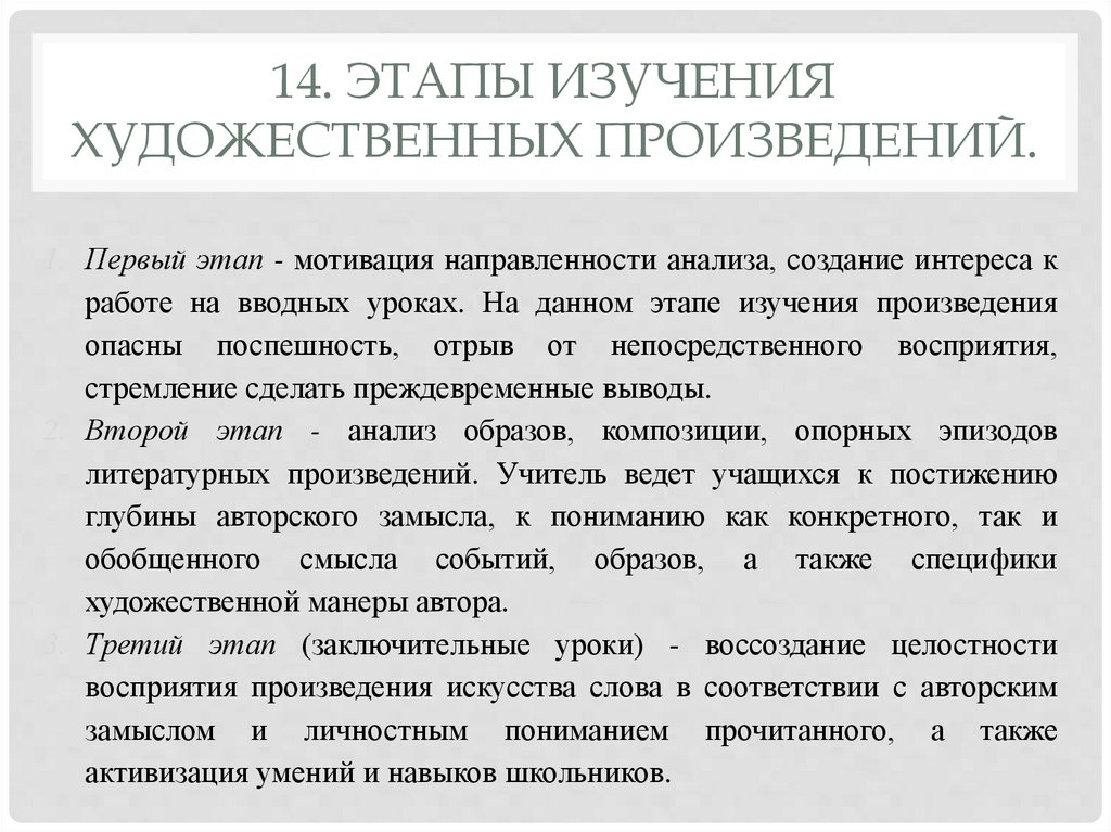 14. ЭТАПЫ ИЗУЧЕНИЯХУДОЖЕСТВЕННЫХ ПРОИЗВЕДЕНИЙ.
