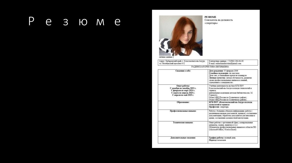 Личные качества: ответственная, коммуникабельная, пунктуальная, амбициозная,