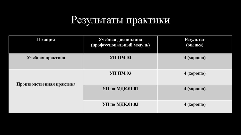 Опыт работы и полученные профессиональные навыки(практика): прохождение