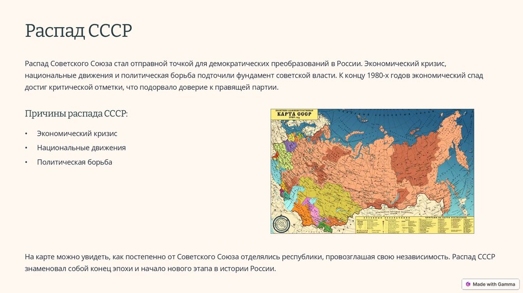 Распад СССРРаспад Советского Союза стал отправной точкой для демократических преобразований в России. Экономический кризис,