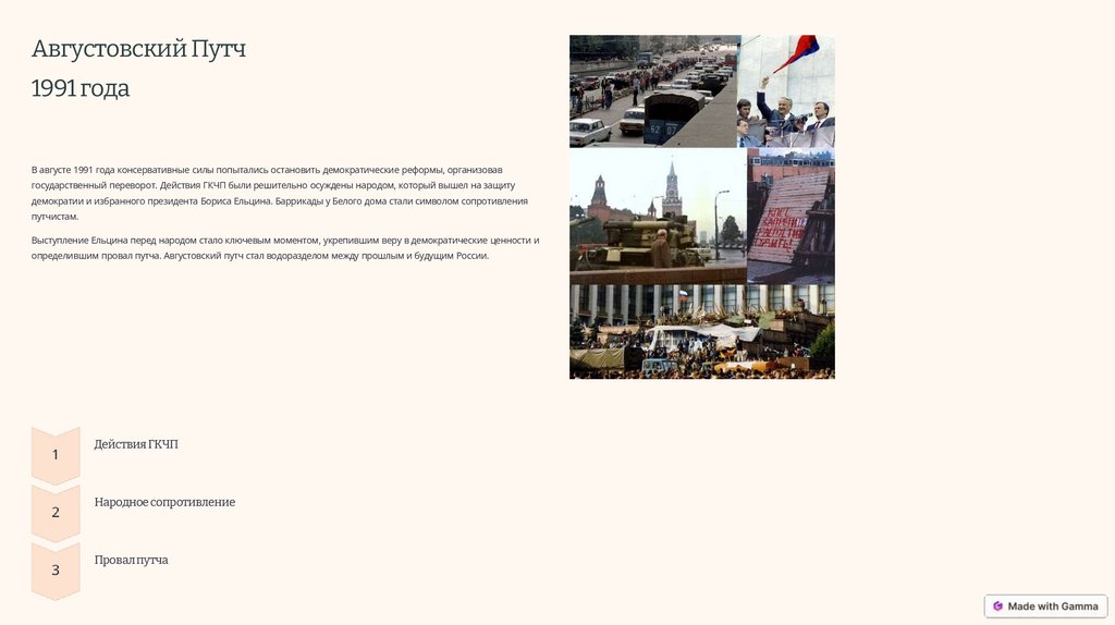 государственный переворот. Действия ГКЧП были решительно осуждены народом, который вышел на защиту