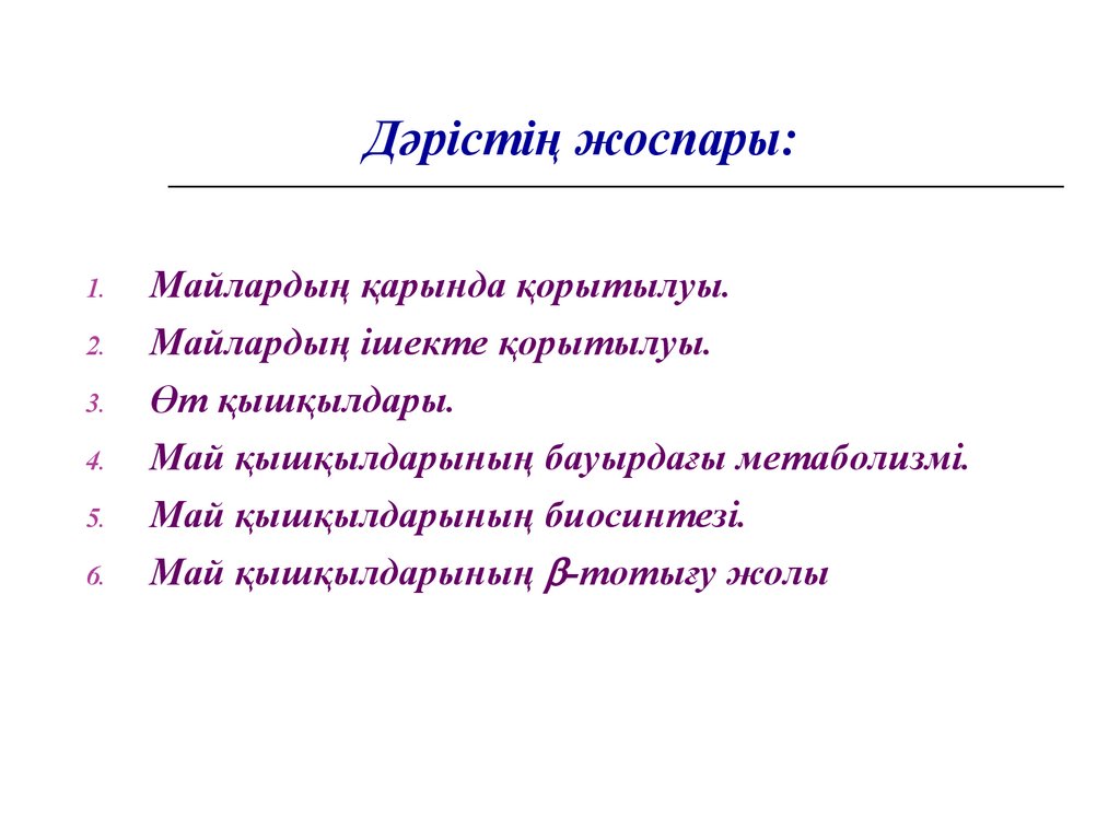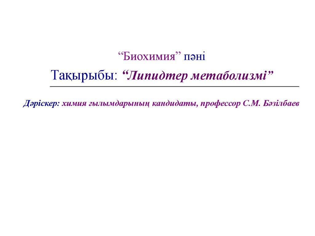 “Биохимия” пәніТақырыбы: “Липидтер метаболизмі”