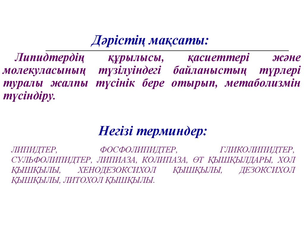 “Липидтер” тақықырыбына глоссарий жазу