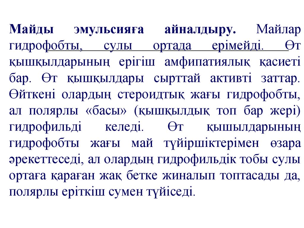эмульсияға айналуын және еруін дамыту. Сөйтіп