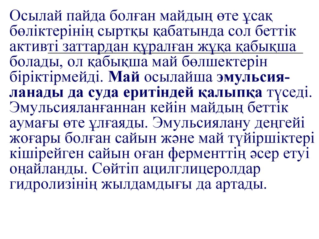 Липазаның активтілігі майлы фазаның бетіне тура