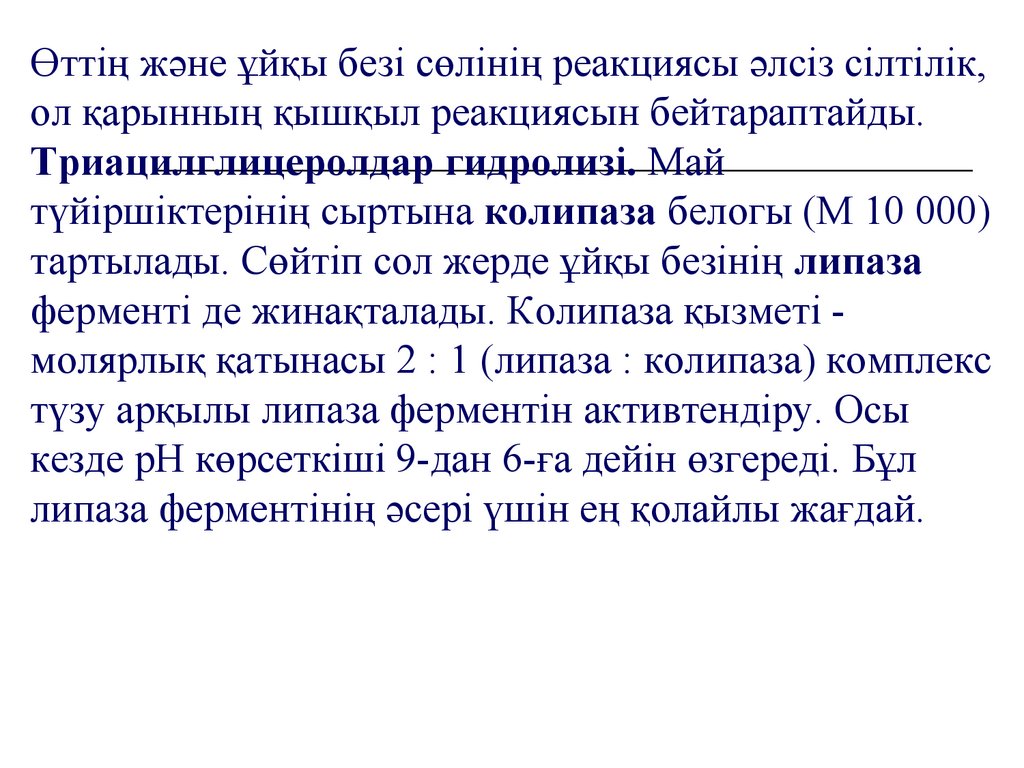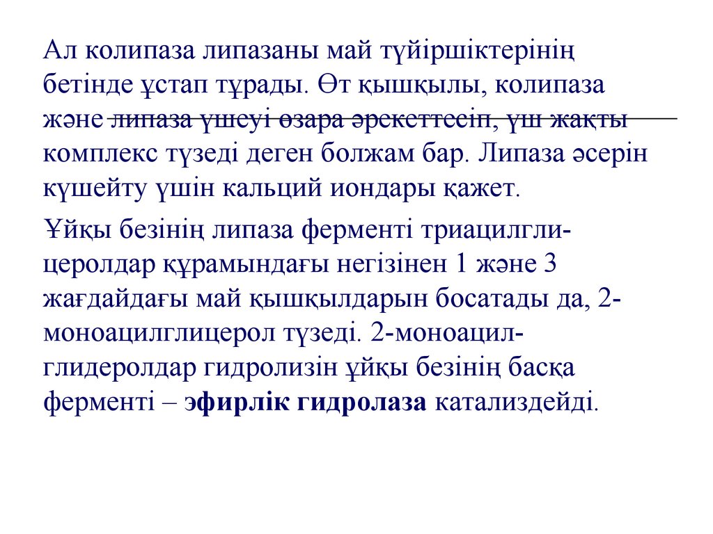 оған әсер етуші ұйқы безінің липаза ферменті. Мұнда