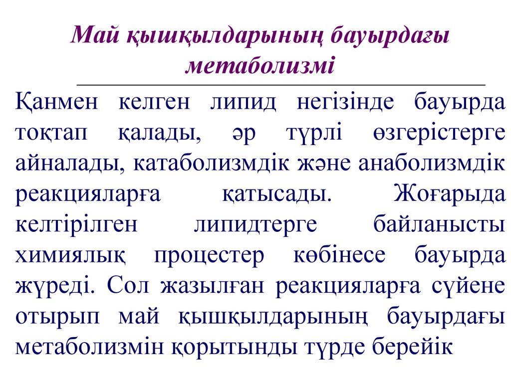 Май қышқылдарының бауырдағы метаболизмі.
