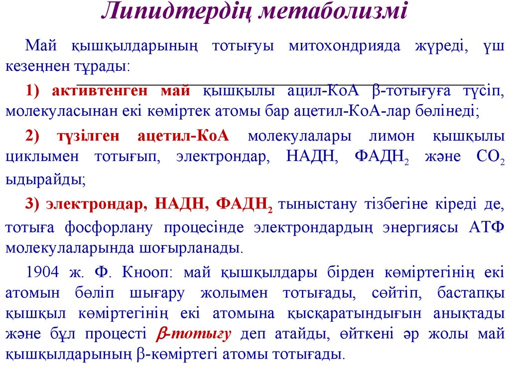 Май қышқылдарының -тотығуы-тотығудың механизмі алғаш рет 1904 ж. Кнопп ашты