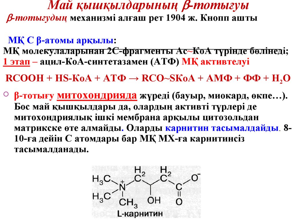β-тотығу митохондрияда жүреді (бауыр, миокард, өкпе…).