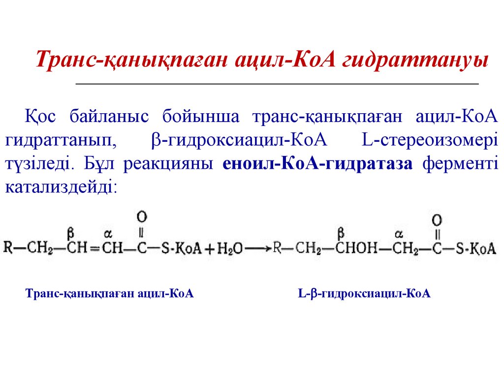 түзіледі. Бұл реакцияны еноил-КоА-гидратаза ферменті