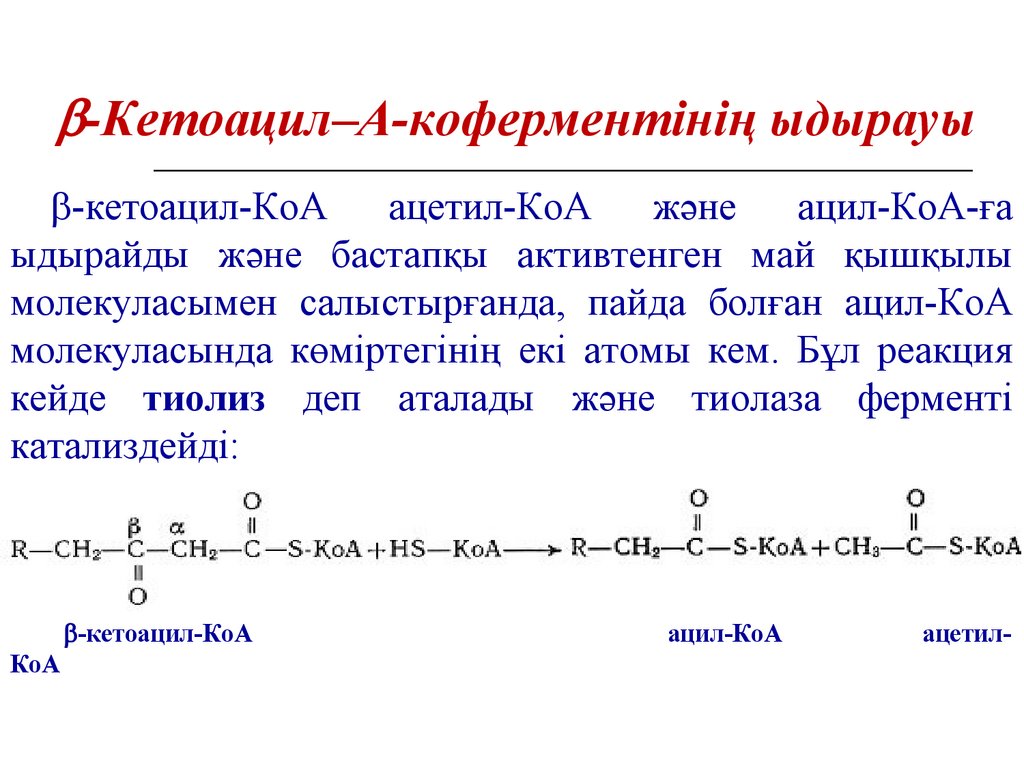 -Кетоацил–А-коферментінің ыдырауы-кетоацил-КоА