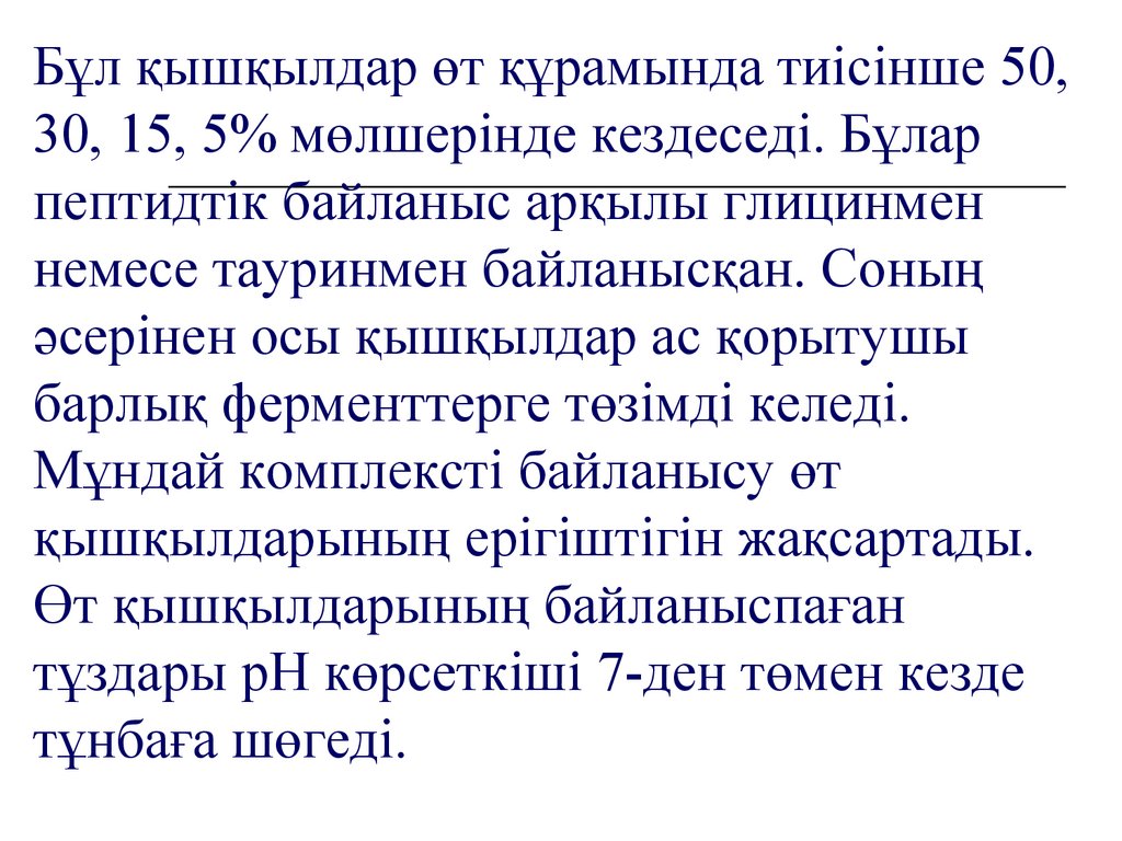 Бұл қышқылдар өт құрамында тиісінше 50,30, 15, 5% мөлшерінде кездеседі. Бұлар