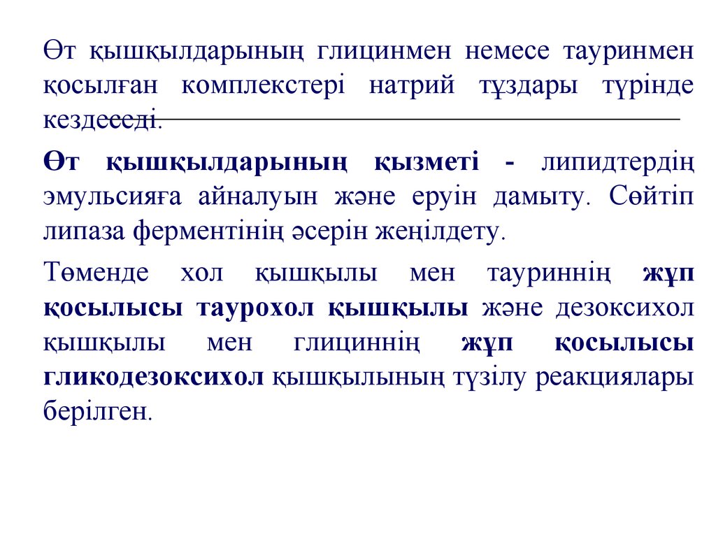 Өт қышқылдарының глицинмен немесе тауринменқосылған комплекстері натрий тұздары түрінде