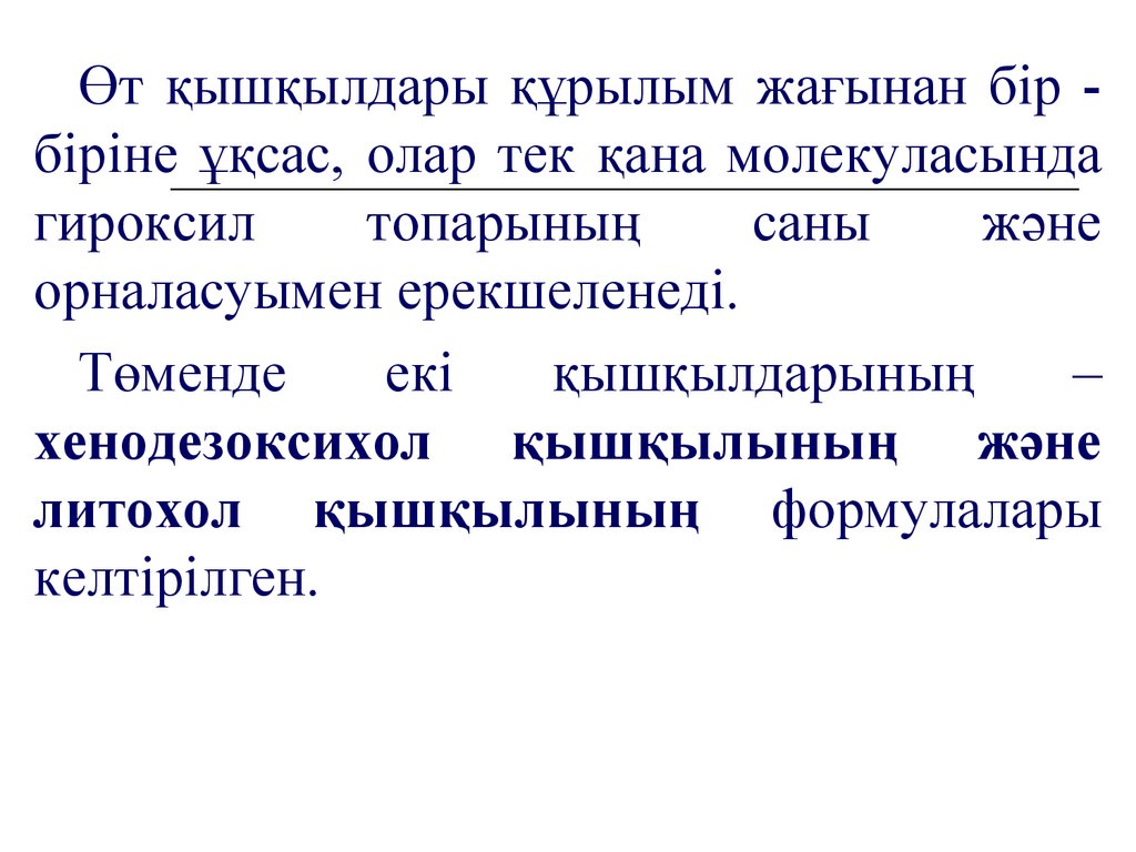 Өт қышқылдары құрылым жағынан бір біріне ұқсас, олар тек қана молекуласындагироксил