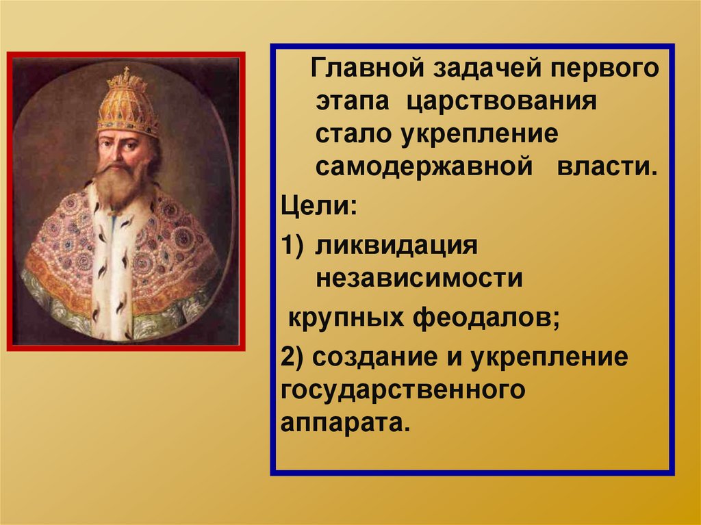 Главной задачей первогоэтапа царствования