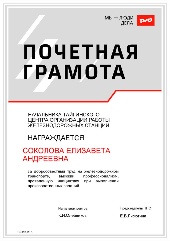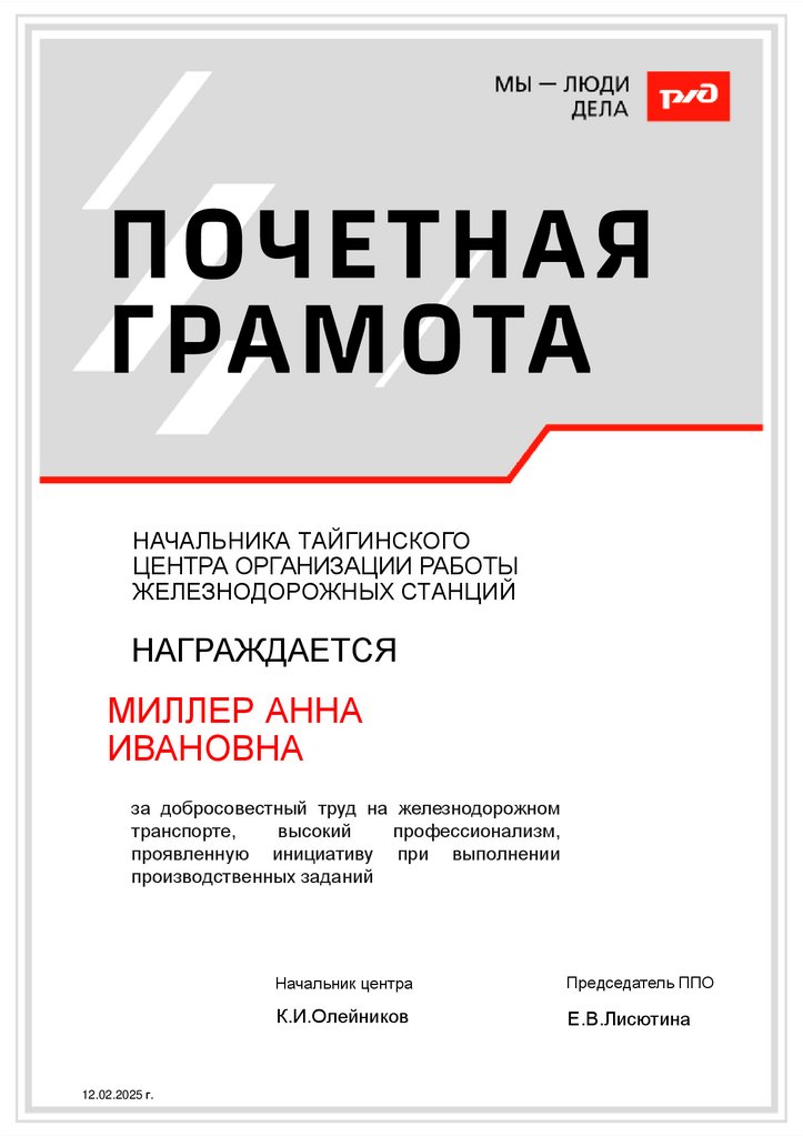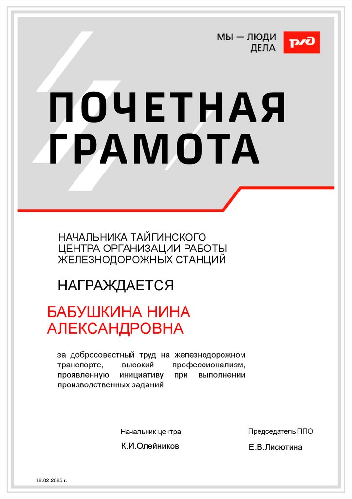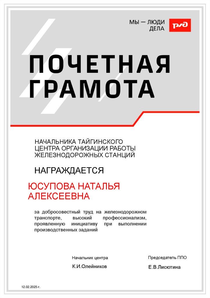 за добросовестный труд на железнодорожном