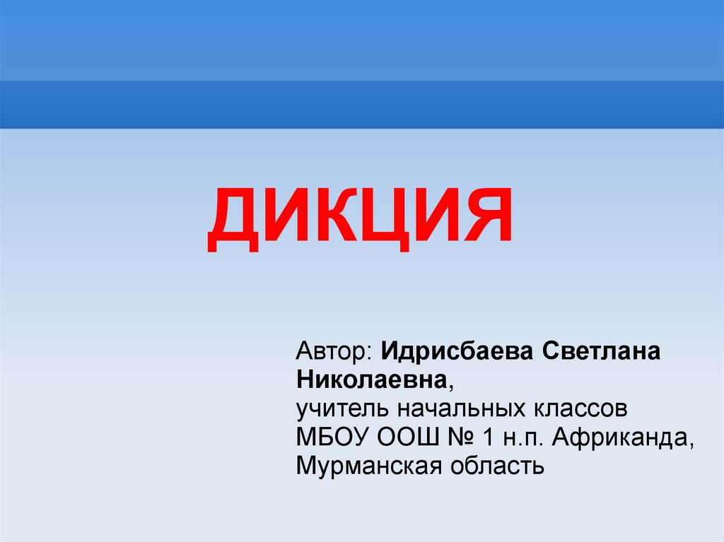 ДИКЦИЯАвтор: Идрисбаева Светлана