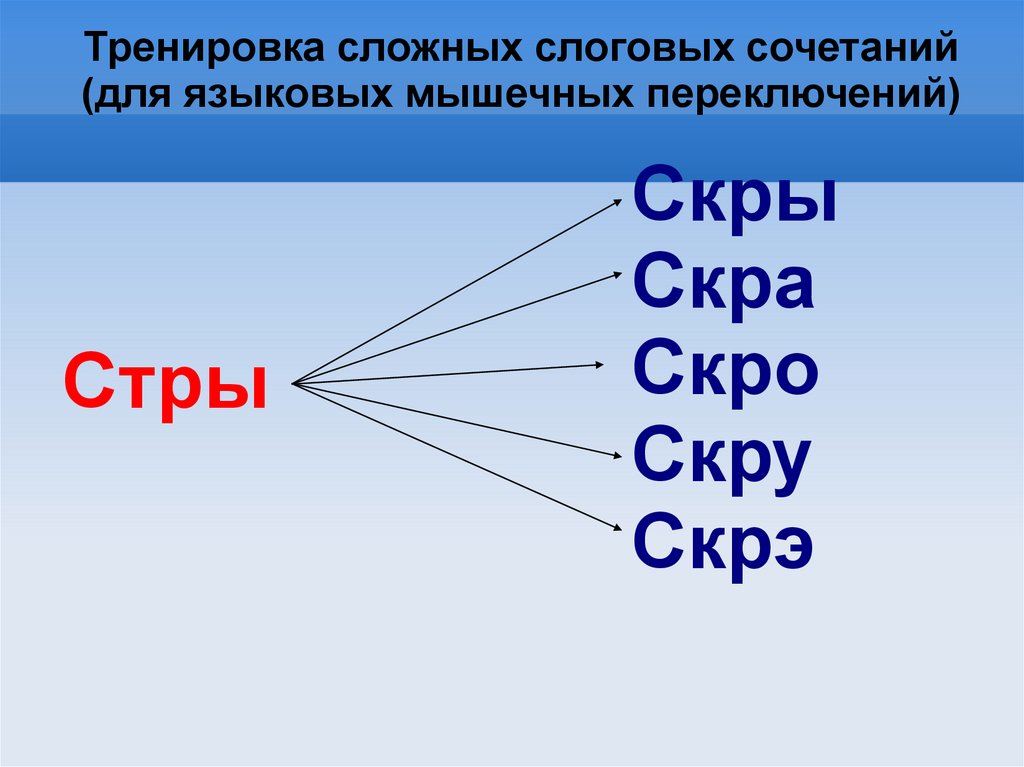 Тренировка сложных слоговых сочетаний(для языковых мышечных переключений)