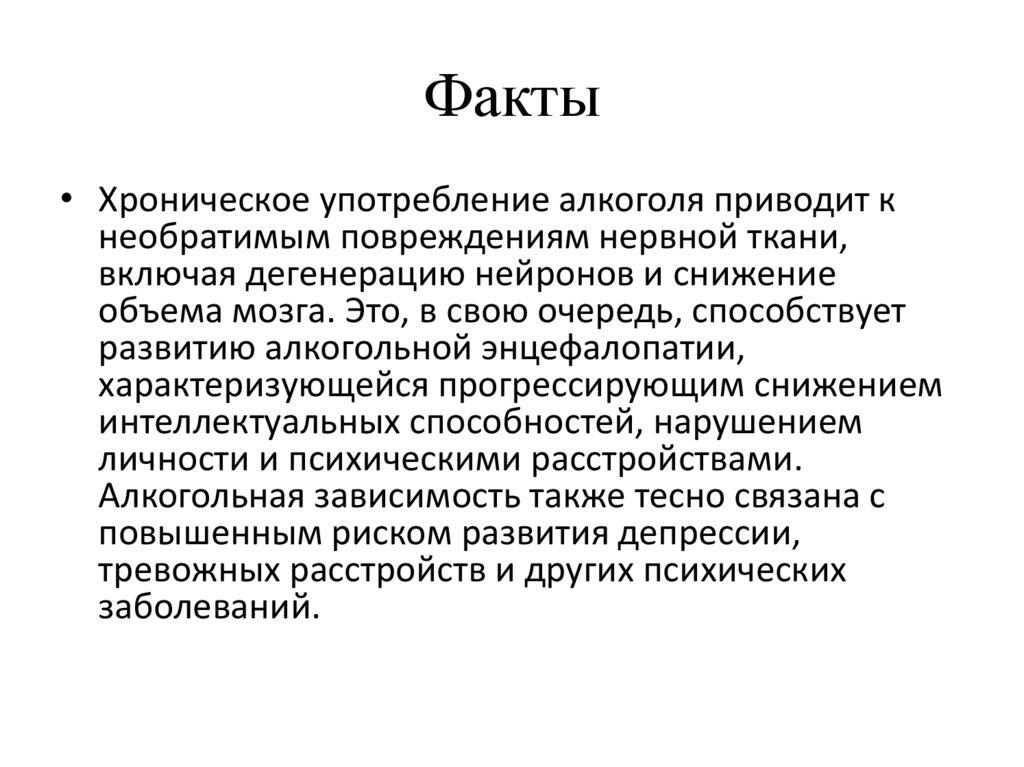 Факты• Хроническое употребление алкоголя приводит к