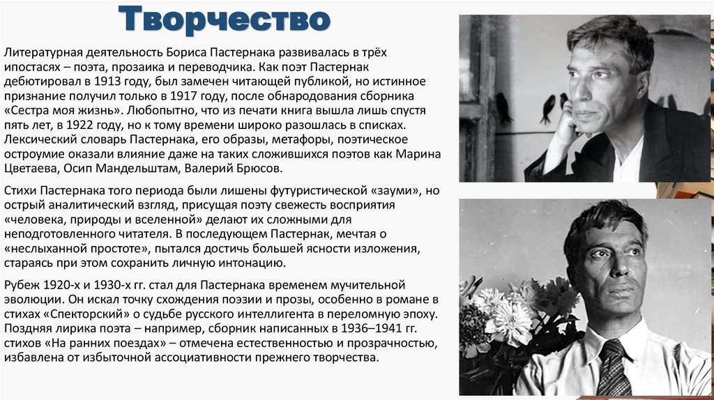 ипостасях – поэта, прозаика и переводчика. Как поэт Пастернак