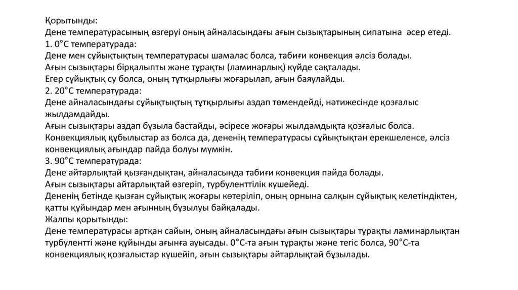 Қорытынды:Дене температурасының өзгеруі оның айналасындағы ағын сызықтарының сипатына әсер етеді.